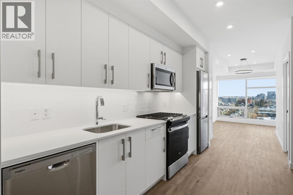 Luxury Living in Frontier Kensington with Downtown ViewsWelcome to this beautifully designed 2 bedroom apartment in the heart of Kensington. This modern home offers stunning downtown skyline views and an open-concept layout filled with natural light.The sleek kitchen features high-end appliances and contemporary cabinetry, flowing seamlessly into the living space and onto a private balcony—perfect for enjoying the cityscape. The spacious bedroom provides a comfortable retreat, while the versatile den is ideal for a home office or guest space. Elegant finishes and thoughtful design throughout create a truly upscale feel.Located in one of Calgary’s most desirable neighbourhoods, Frontier Kensington offers premium amenities and is steps from shops, cafés, river pathways, transit, and downtown.Urban sophistication, unbeatable views, and an exceptional lifestyle await. (id:6365)
